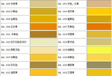 色卡對照